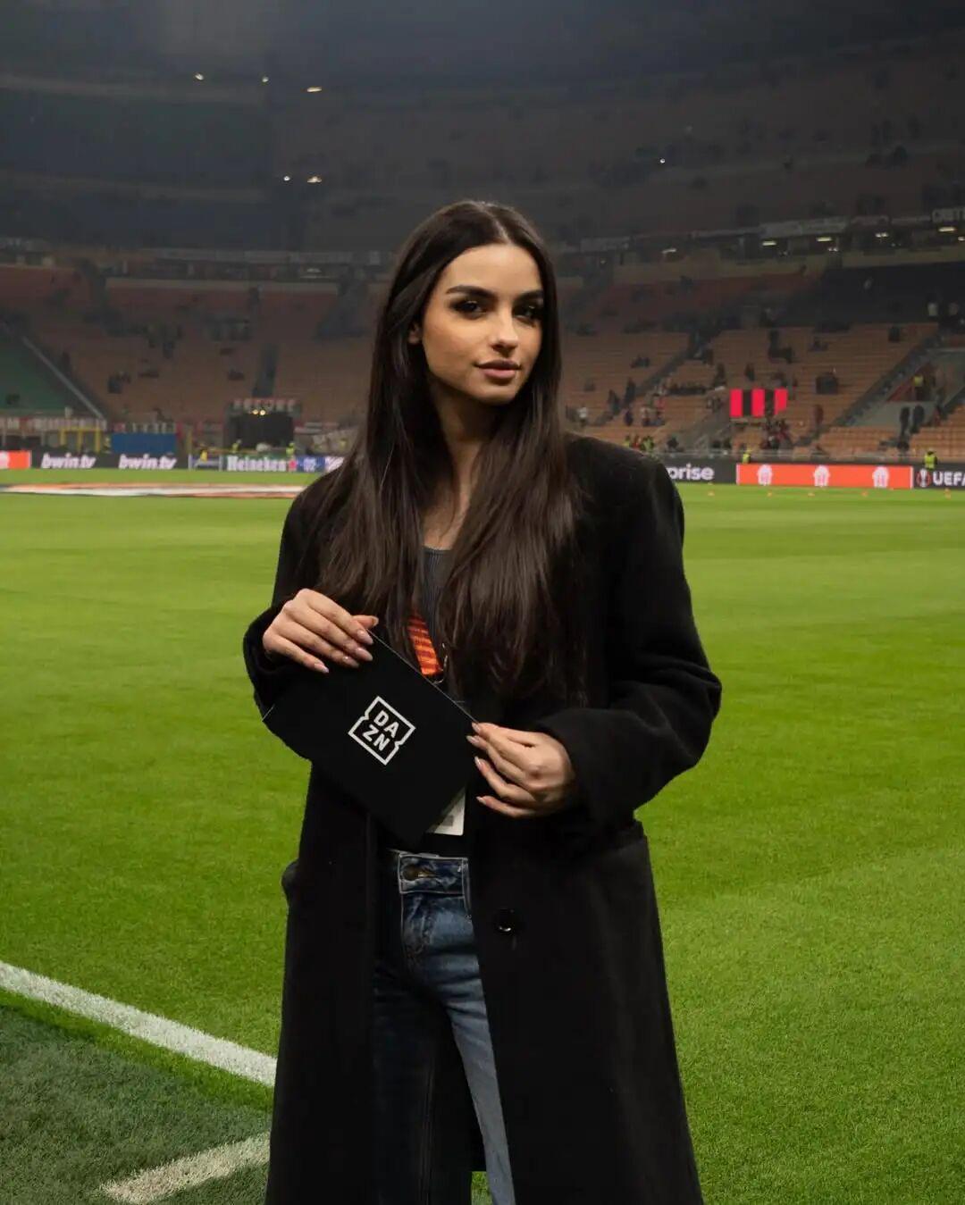 出生于2002年7月的达莉拉·安娜·斯塔比莱,是一位意大利足球内容创作新星。23岁的她曾供职于DAZN,涉猎过欧冠、欧联、意甲等赛事,拥有较为丰富的场边报道经验,同时也与各种品牌、供应商合作,主持电视、电台和网络节目。去年夏天,斯塔比莱参与主持了意大利版“国王联赛”,令其人气在短时间内迅速蹿升。目前,她的Instagram平台粉丝数量已经超过21万,TikTok平台粉丝数量也接近20万。